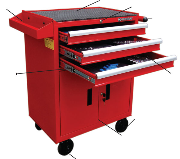 • Possui 4 rodas de 3”, sendo 2 fixas e 2 giratórias sendo 1 com freio